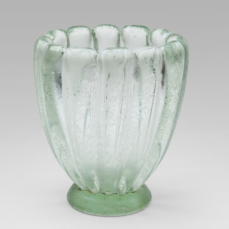 Un vaso costolato in cristallo corroso anni '40.