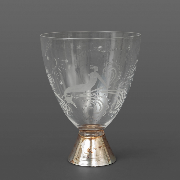 'Sirena' coppa in vetro cristallo inciso alla moletta e piede argentato anni '30.