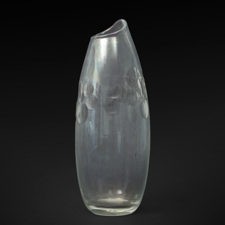 Un vaso inciso 'Milleocchi' in cristallo iridato con incisioni lenticolari 1954.