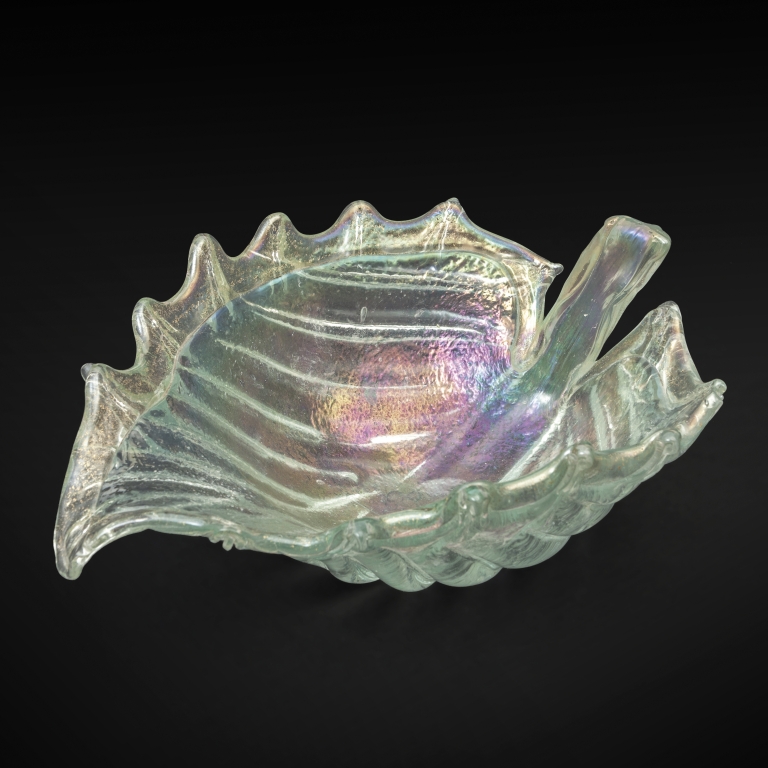 Una coppa a foglia cristallo iridato e foglia oro sul bordo anni '40.