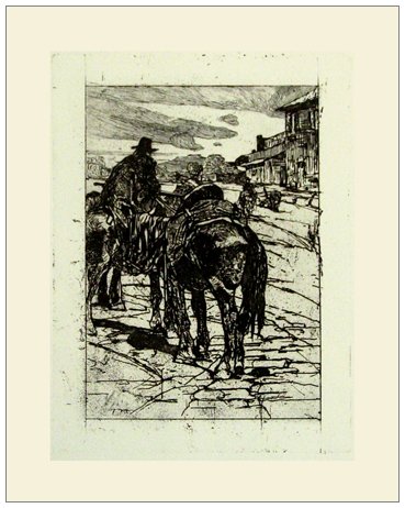 GIOVANNI FATTORI 1825 - 1908 Paesaggio con butteri Acquaforte su rame es.coevo impresso su carta pesante avorio filigranata in a. a d. “PM/Fabriano” con corona merlata sopra la scritta “Umbria/Italia”. (51,2 x 38,2 foglio - 16,2 x 11,5 inc.) Pubbl.: - “Giovanni Fattori. L’Opera Incisa” cat. a cura di A. Baboni e A. Malesci, Edizioni Over, Milano,1983, pp.174, 175, 512-513, tav.LXXV. - “Giovanni Fattori” cat. mostra a cura di Andrea Baboni e Giorgio Cortenova, Palazzo Forti, Verona - Museo Fattori, Livorno, 1999, Electa Editore, Milano, p.186, n.159.