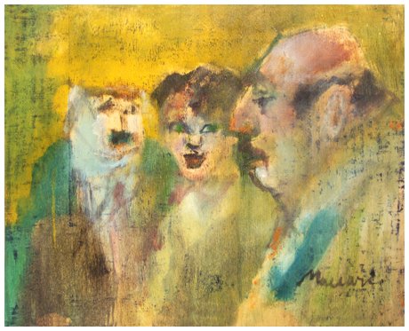 MINO MACCARI 1898 - 1989 Senza titolo Olio su tavola 32 x 40. Firma in b. a d.; sul verso matrice di xilografia. Autentica dell’autore su foto con timbro a secco Nemo Galleni, Forte dei Marmi.