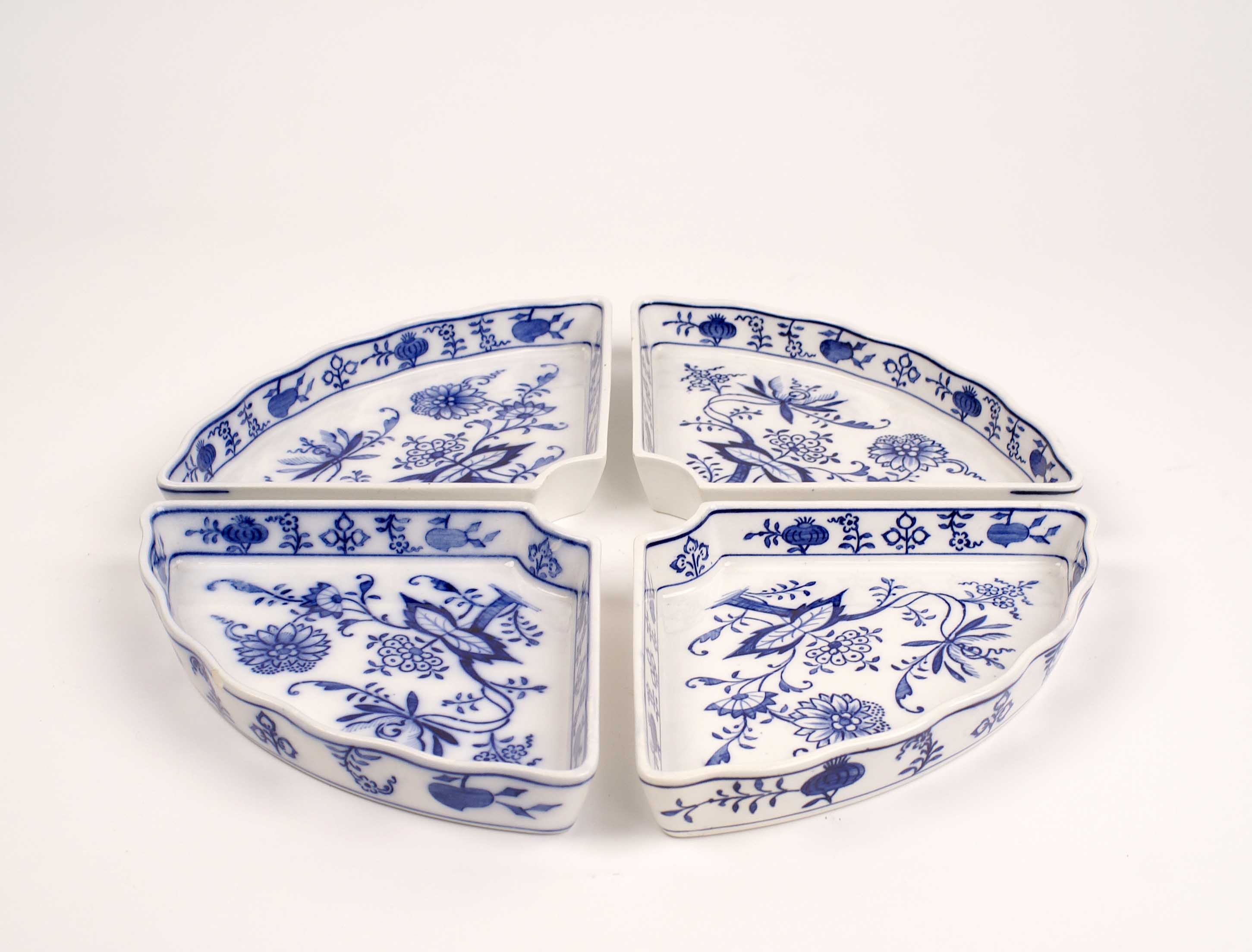 ANTIPASTIERA IN PORCELLANA BIANCA E BLU COBALTO Villeroy & Boch, vecchia manifattura Composta da quattro elementi ( lievi difetti) D. 32,5 cm.