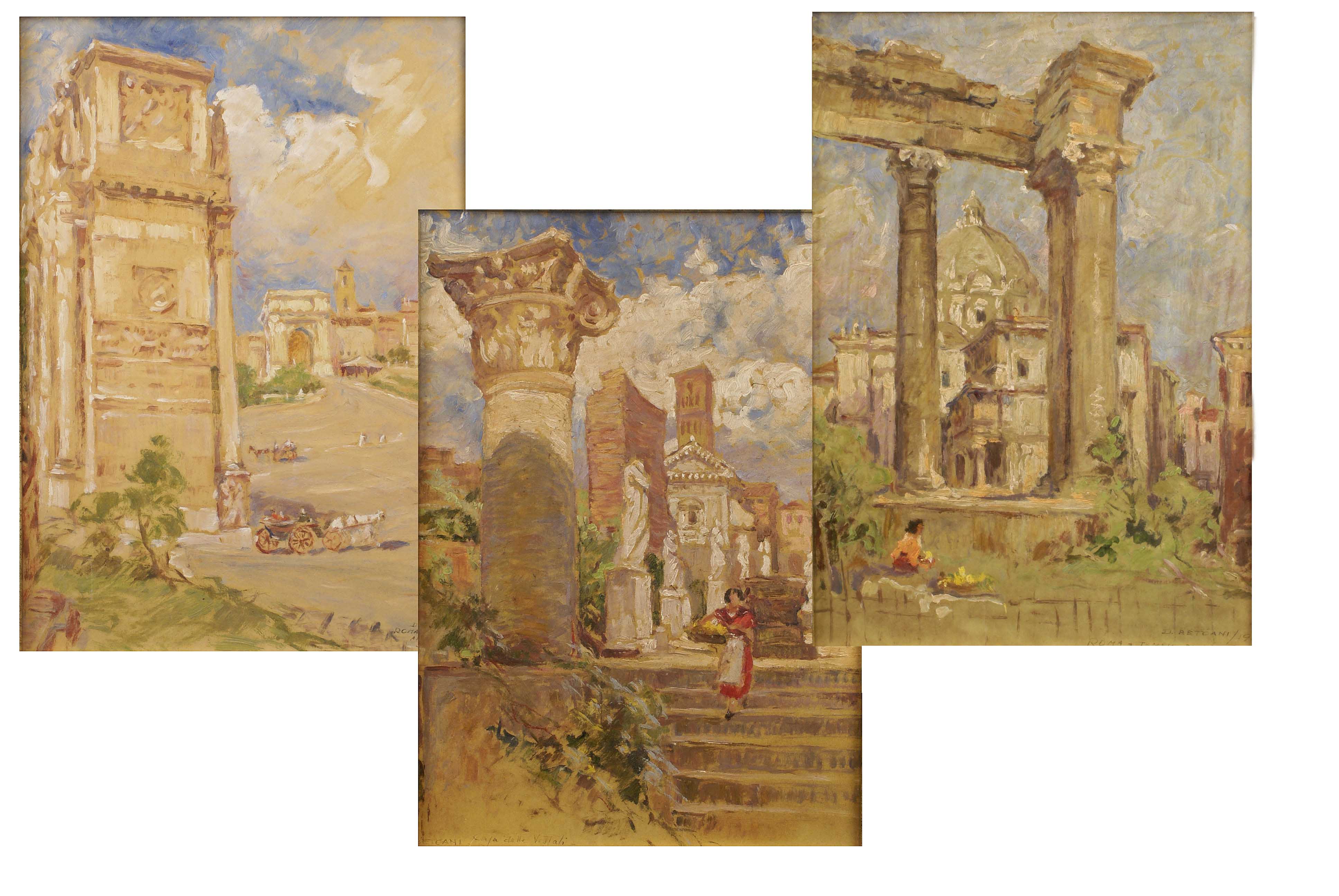 D. BETOANI Italia XX Sec. "Vedute di Roma", tre oli su cartoncino telato,...