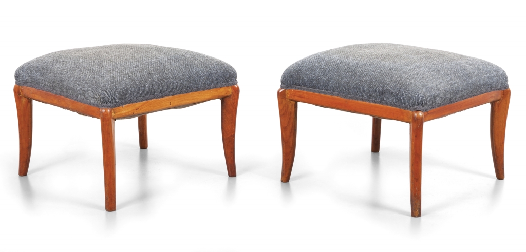 Legno di noce sedili imbottiti rivestiti in tessuto.