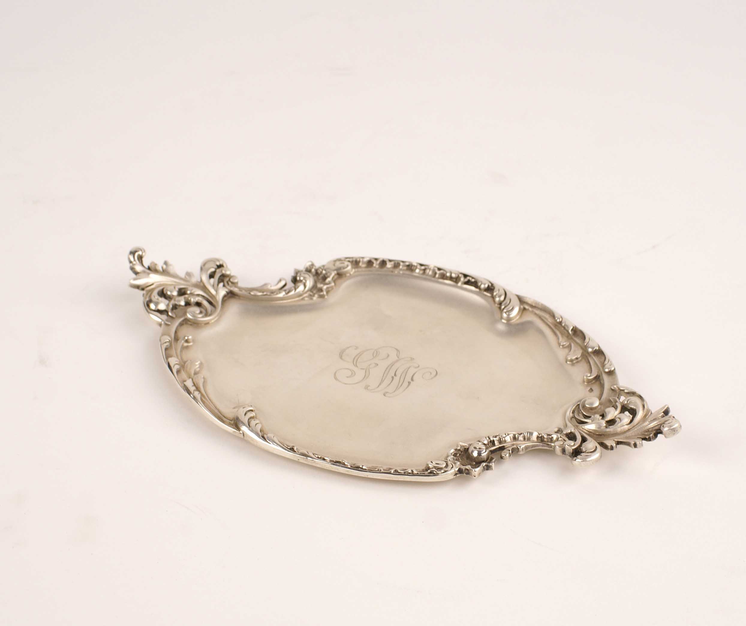 PICCOLO PIATTINO IN ARGENTO Francia fine del XIX Sec. Con profilo sagomato e sbalzato a motivo floreale, cm. 23x13 Peso 174 gr.