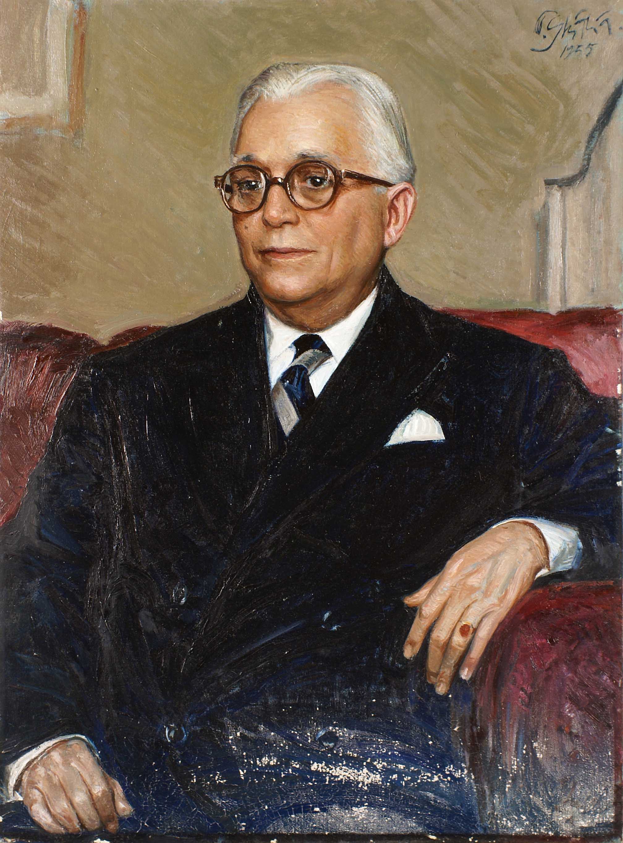 PAULO GHIGLIA Firenze 1905-Roma 1979 "Ritratto maschile" olio su tela, firmato e datato 1955 in alto a destra, entro cornice in legno dorato del XIX secolo. La tela presenta cadute di colore nella parte inferiore Dim. 73x54 cm.