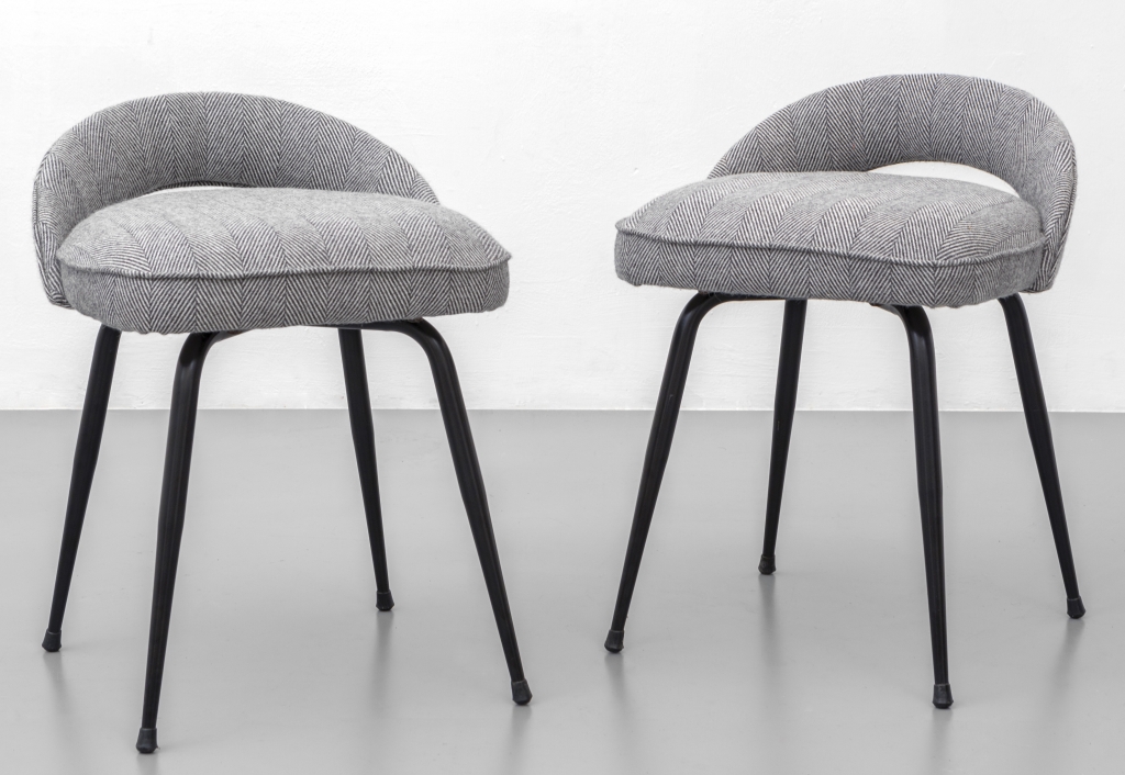 Supporti di ferro verniciato imbottiture rivestite in tessuto.