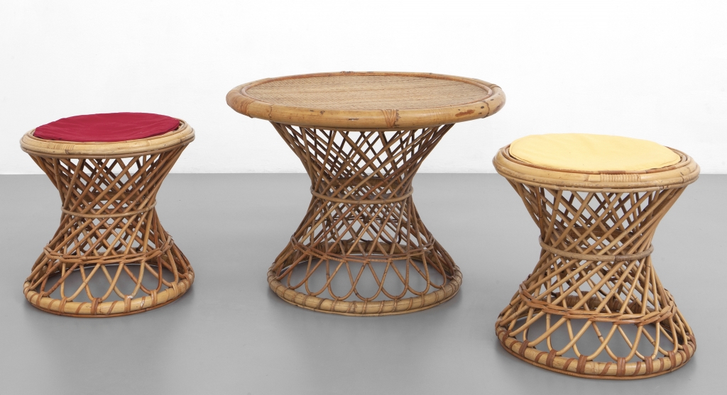 DUE SGABELLI e UN TAVOLINO anni '60.