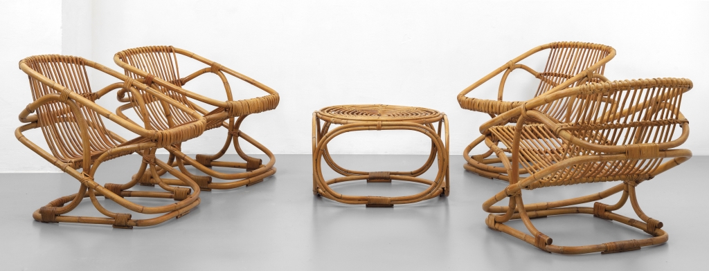 QUATTRO POLTRONE E UN TAVOLINO anni '60.
