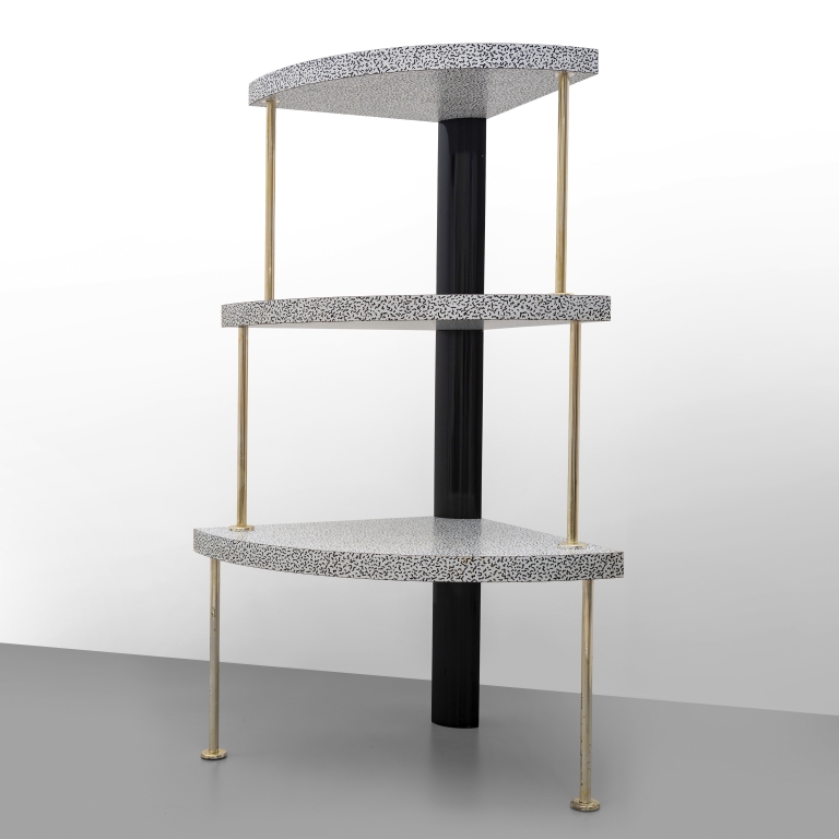 A 'Cantone' corner shelf manufactured by ZANOTTA 1981.
