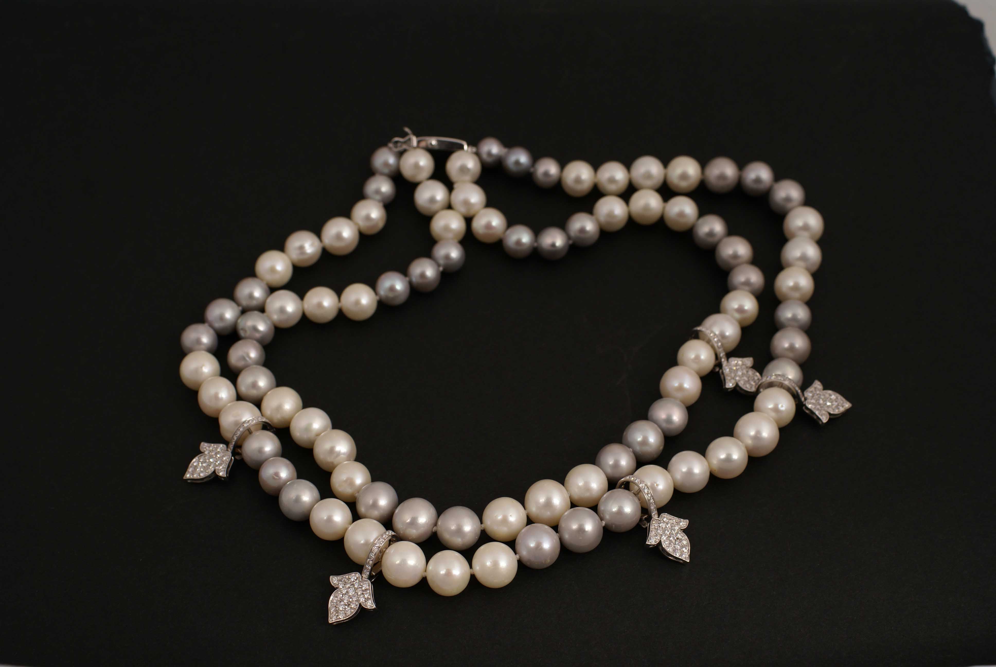 COLLANA A DUE FILI DI PERLE COLTIVATE Bianche e grigie con chiusura in oro bianco 18kt L. 42 cm.