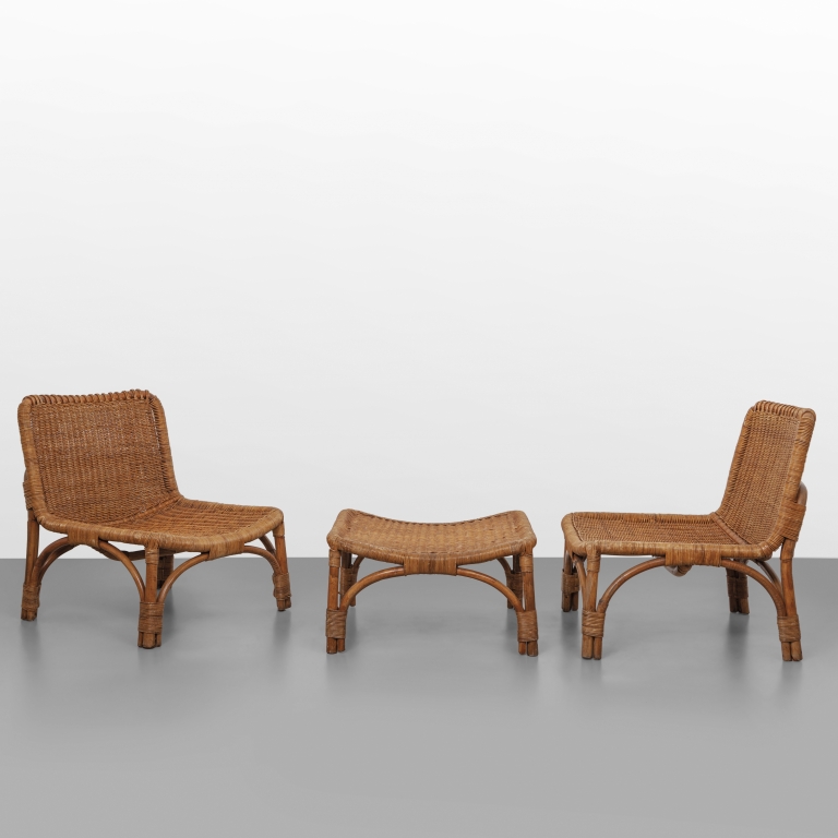 Due poltrone e un poggiapiedi per FRATELLI CASTANO anni '60.