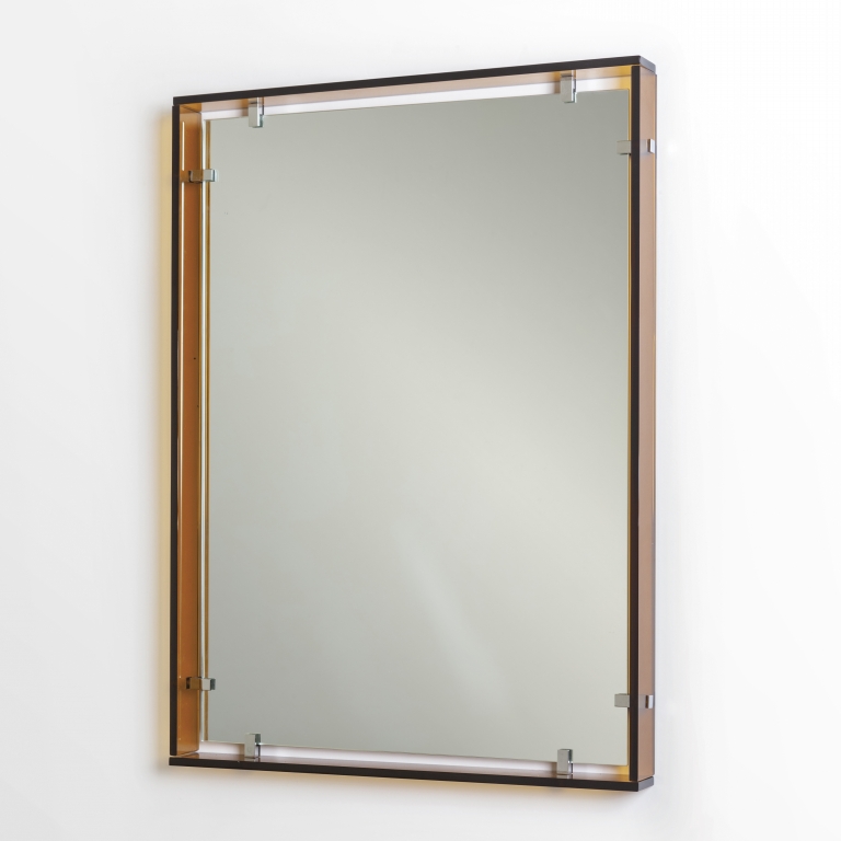 Bevelled coloured crystal nikel-plated brass and mirrored crystal.