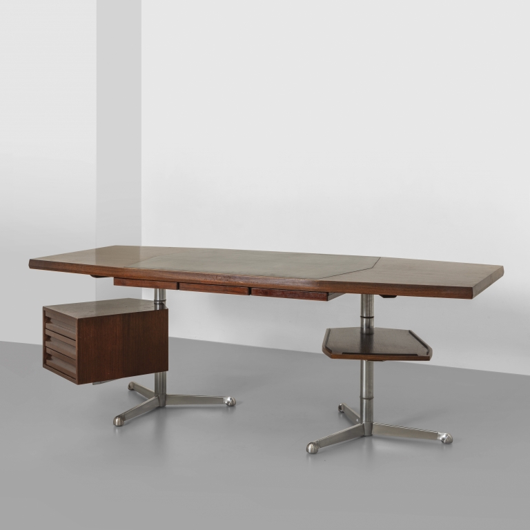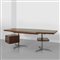 Chrome-plated steel rosewood veneered wood with leather insert and original Manufacturer's label.
