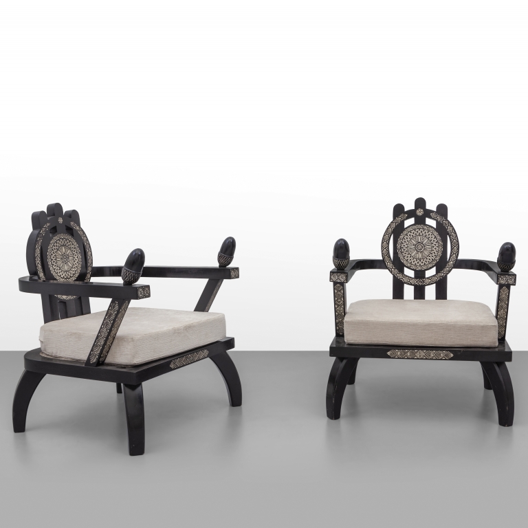 Legno ebanizzato con decoro inciso e dipinto bianco.
