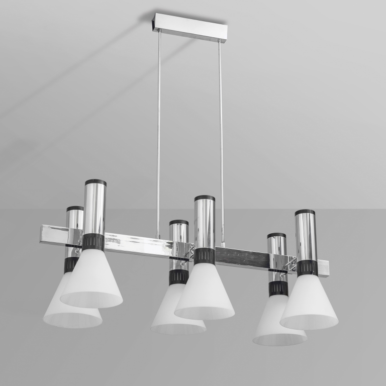 Chrome-plated brass lacquered aluminum and 'Triplex Opal' frosted glass.