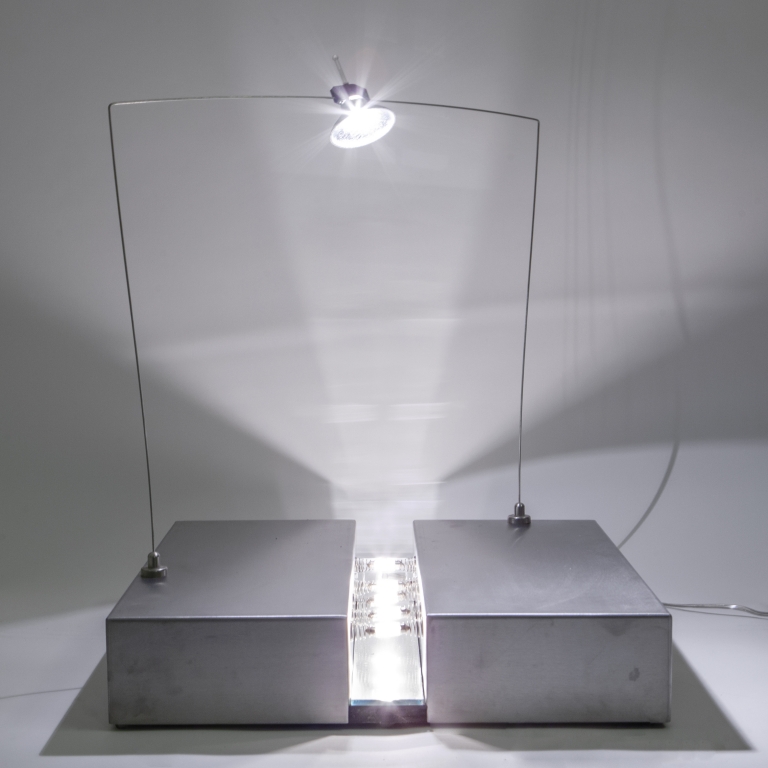 Una lampada da tavolo-espositore 'Base BT-b3'progetto 1972 prototipo autoprodotto in due esemplari 1990.