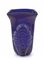 Un vaso in vetro blu con applicazione di foglia d'oro