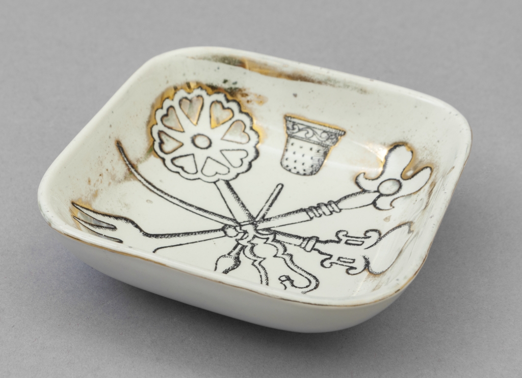 Una coppa quadrangolare in porcellana anni '60.
