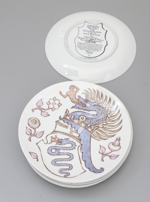 Sei piatti della serie 'iconografia degli stemmi Viscontei' per Alfa Romeo 1970.