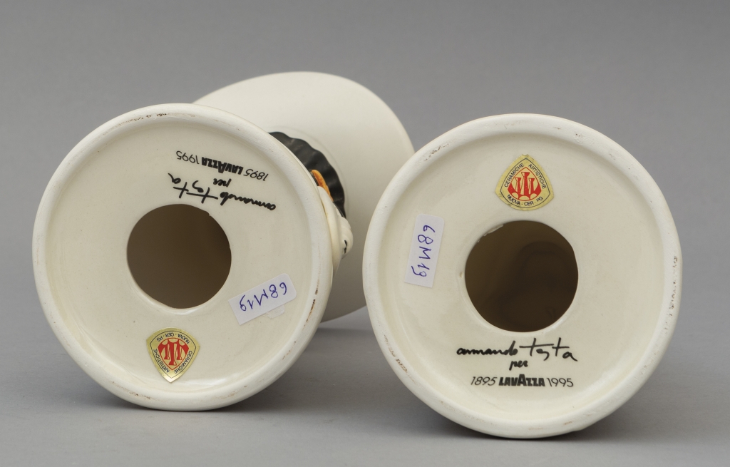 Marcati 'Armando Testa per Lavazza 1895-1995'. Etichetta 'Nova Cer PG'.