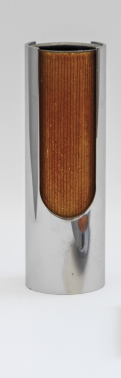 Acciaio cromato rame con applicazione di foglia d'argento trattata al bulino e smaltata.
