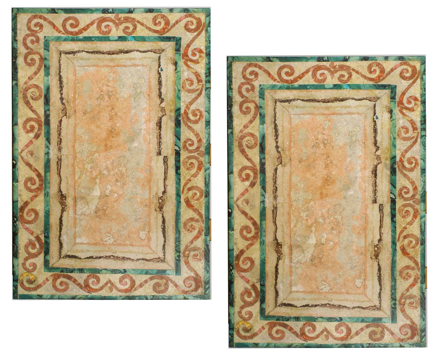 COPPIA DI PIANI IN SCAGLIOLA vecchia manifattura Di forma rettangolare decorati a simulare il marmo e la malachite Dim. 57x36,5 cm.