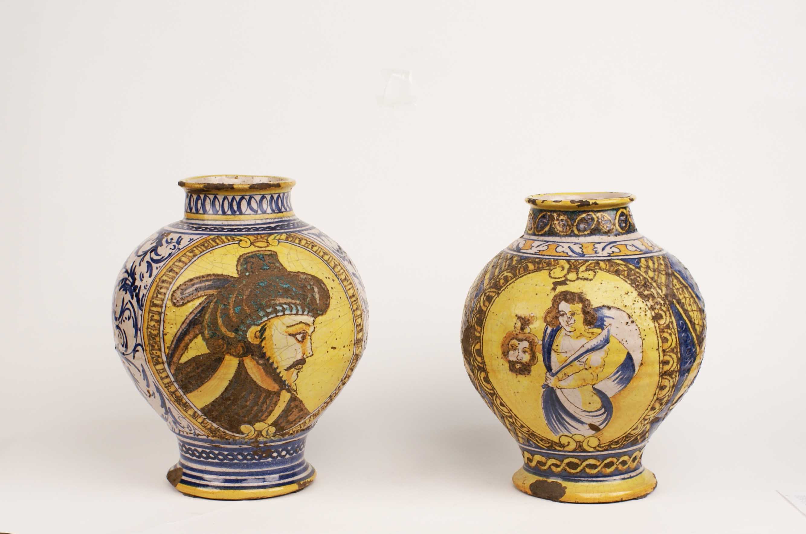 DUE VASI A GIARA Caltagirone Sicilia XIX Sec. In maiolica dipinta in...