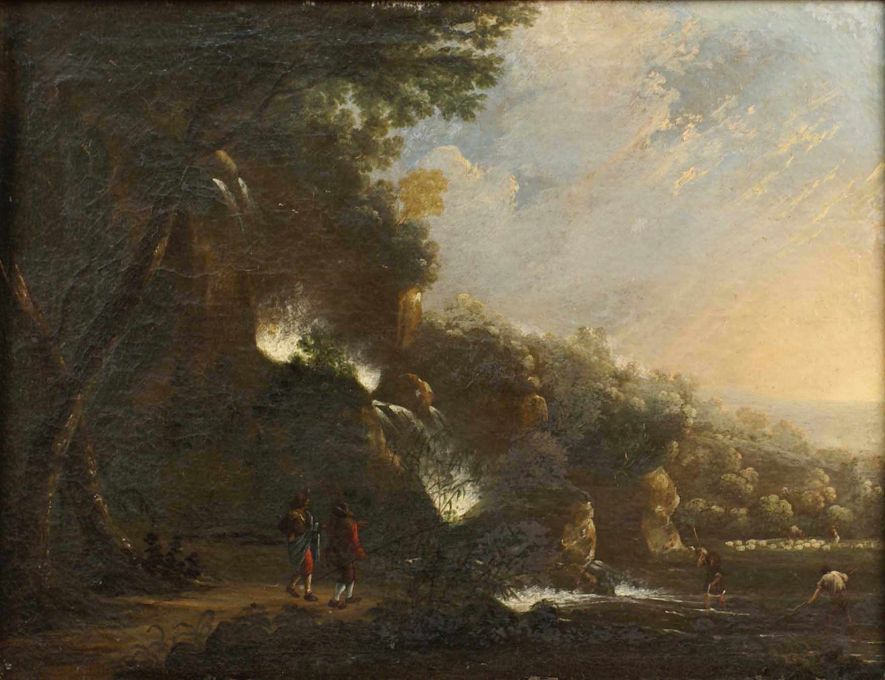 SCUOLA FIAMMINGA dei primi anni del XVIII Sec. "Paesaggio con cascata e...
