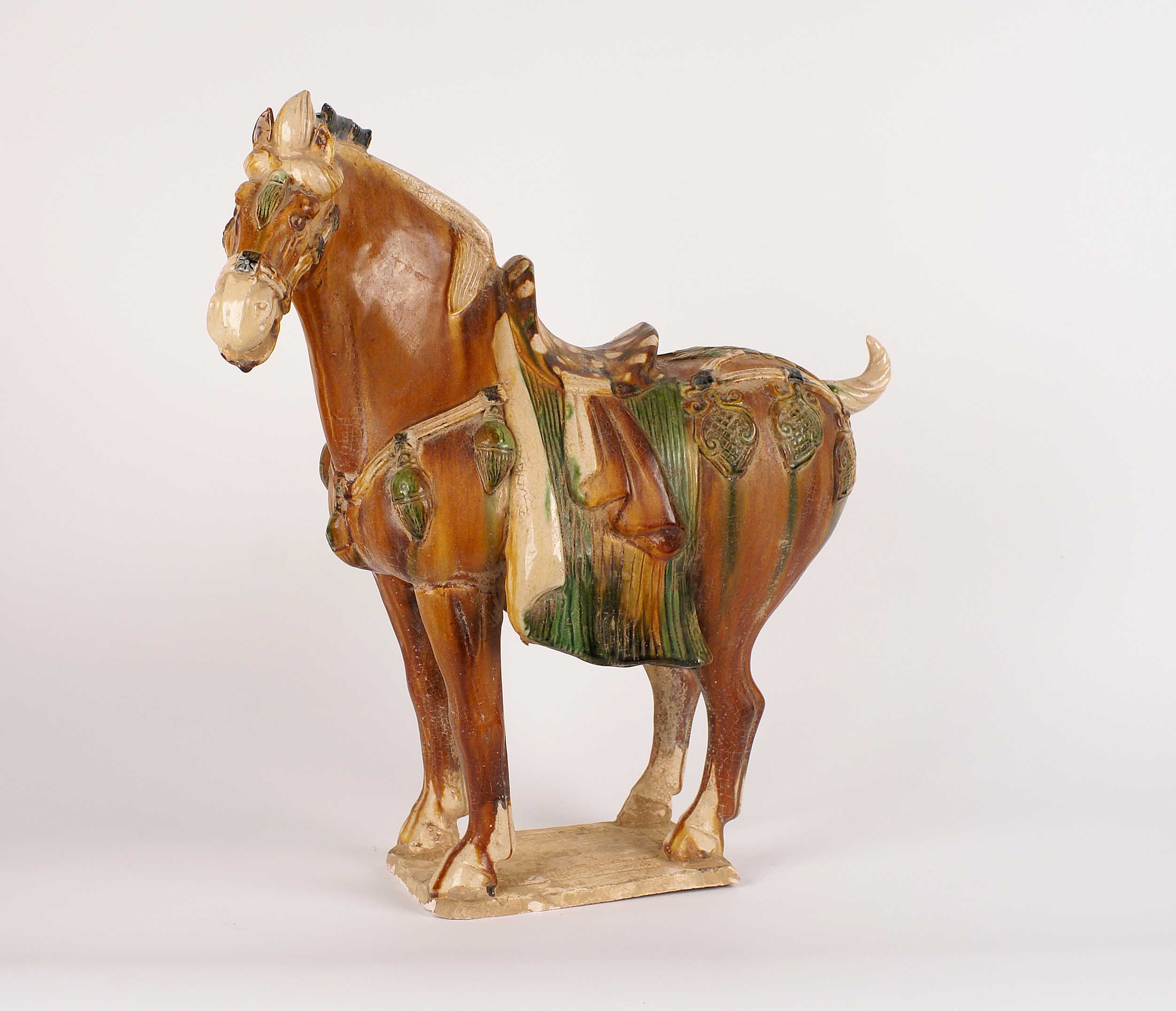 FIGURA DI CAVALLO Cina In ceramica invetriata e dipinta in policromia Dim....