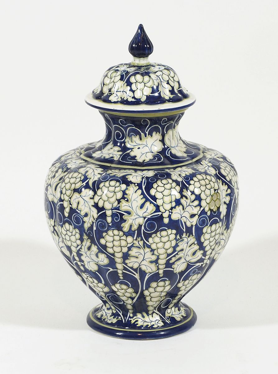Vaso in ceramica policroma decorato con grappoli d'uva. H. cm. 48.