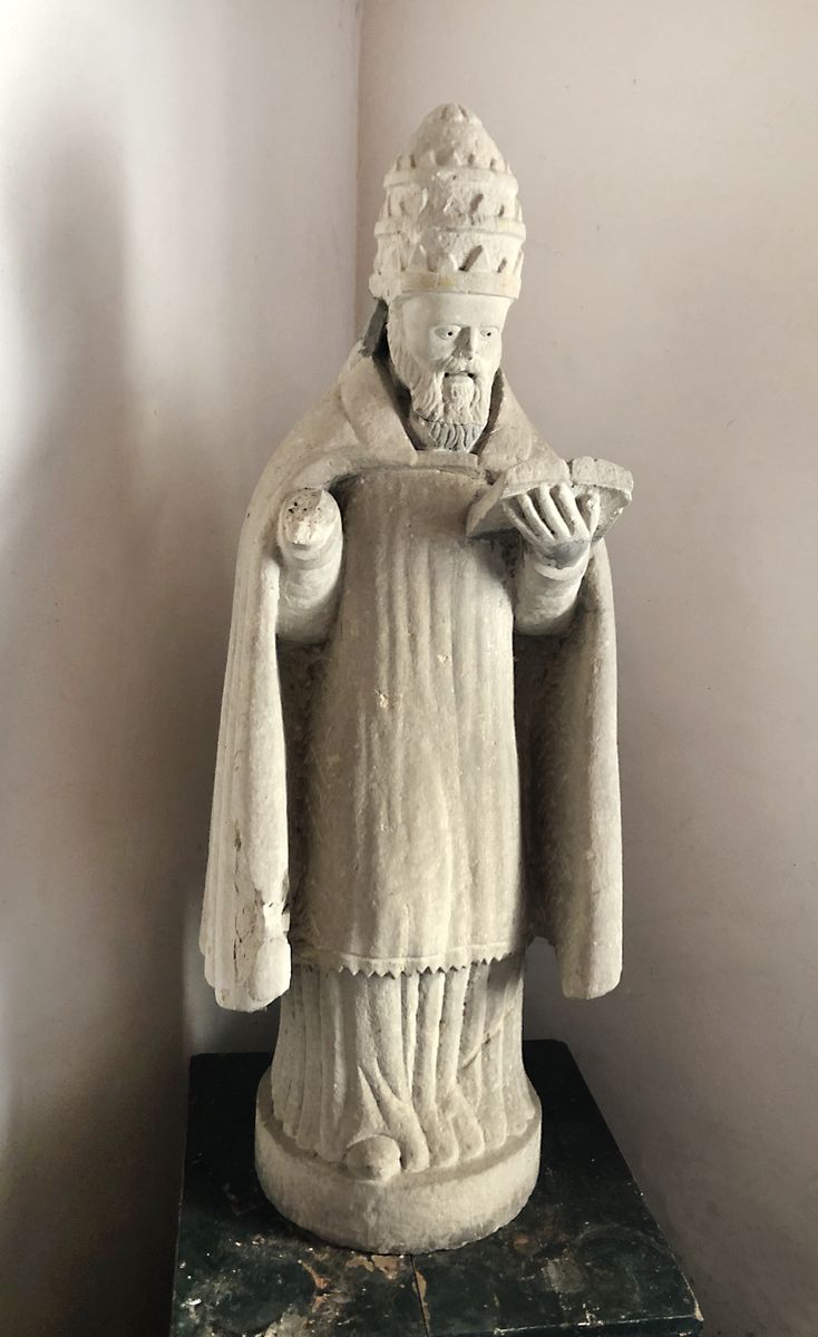 Maestro friulano del XVI secolo Statua in pietra raffigurante Vescovo. H. cm....