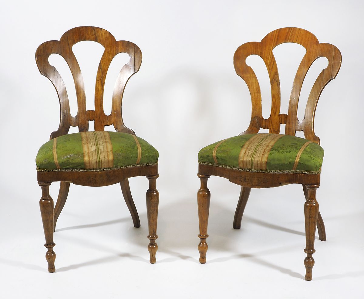 Lotto di 4 sedie in legno con schienale a ventaglio. Metà XIX secolo.