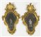 Lotto 81 | Coppia di specchierine in legno dorato scolpito, specchi incisi con figure....