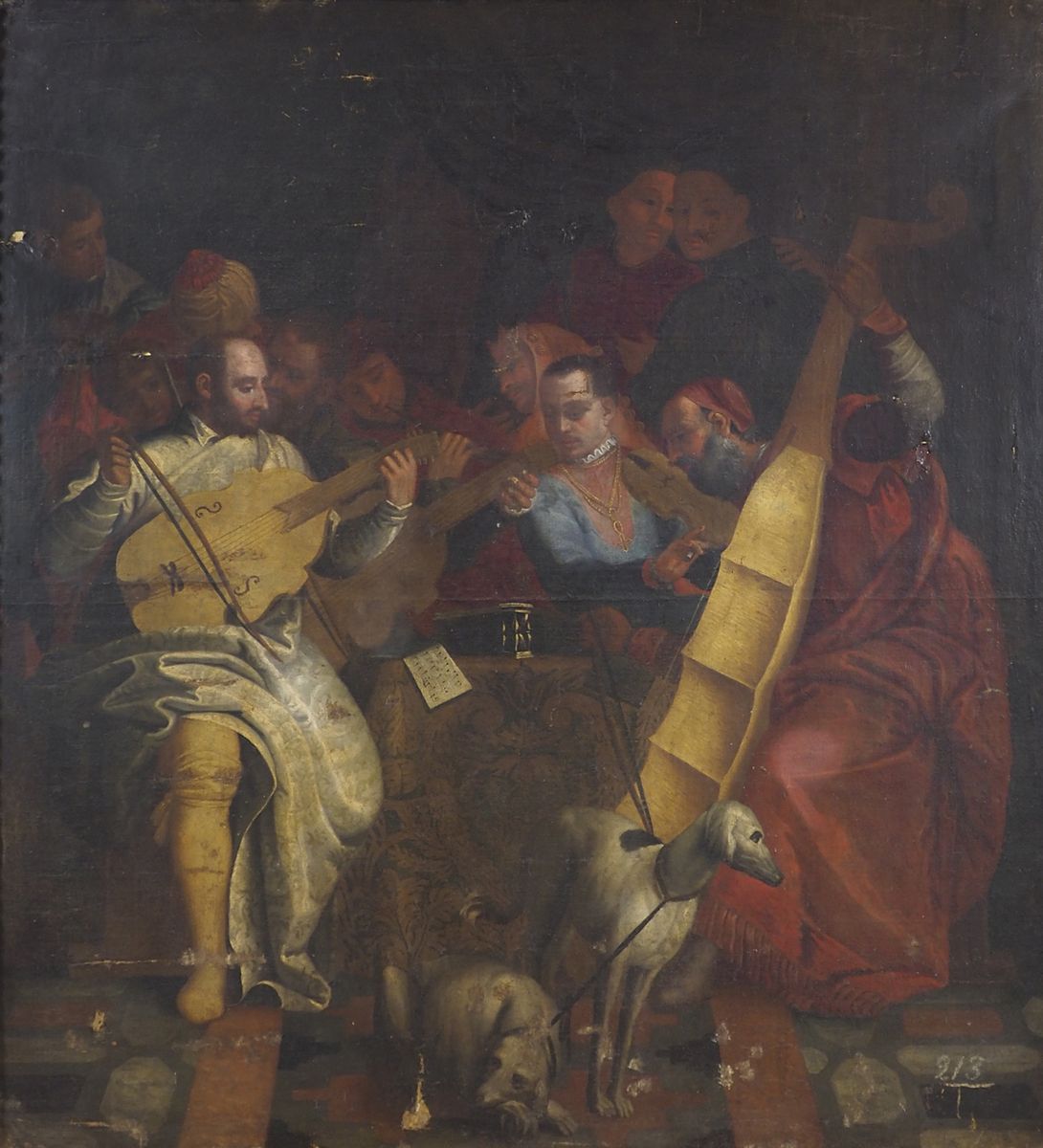 dal Veronese Scuola veneta del XVII secolo "Scena di concerto" cm. 170x160 -...