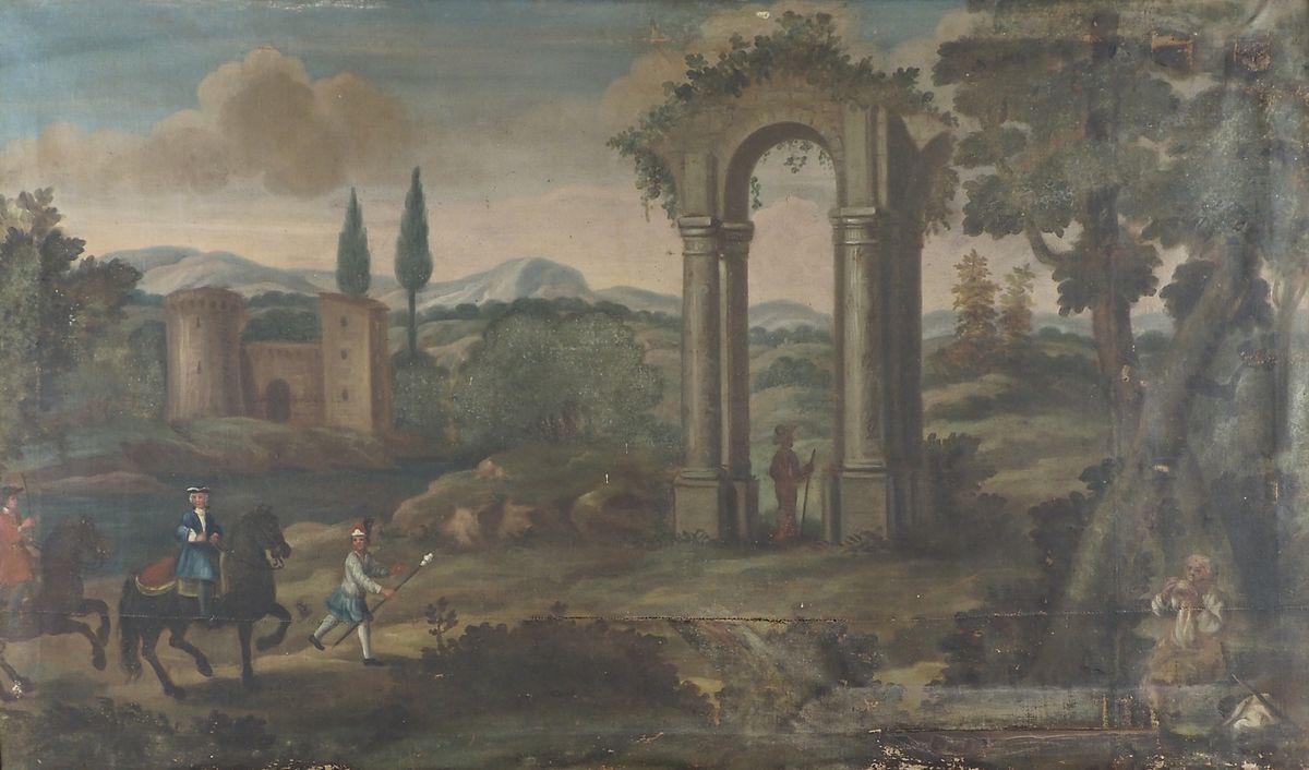 Lotto 95 | Maestro del XVIII secolo "Paesaggio con rovine" cm.90x148 - olio su tela...