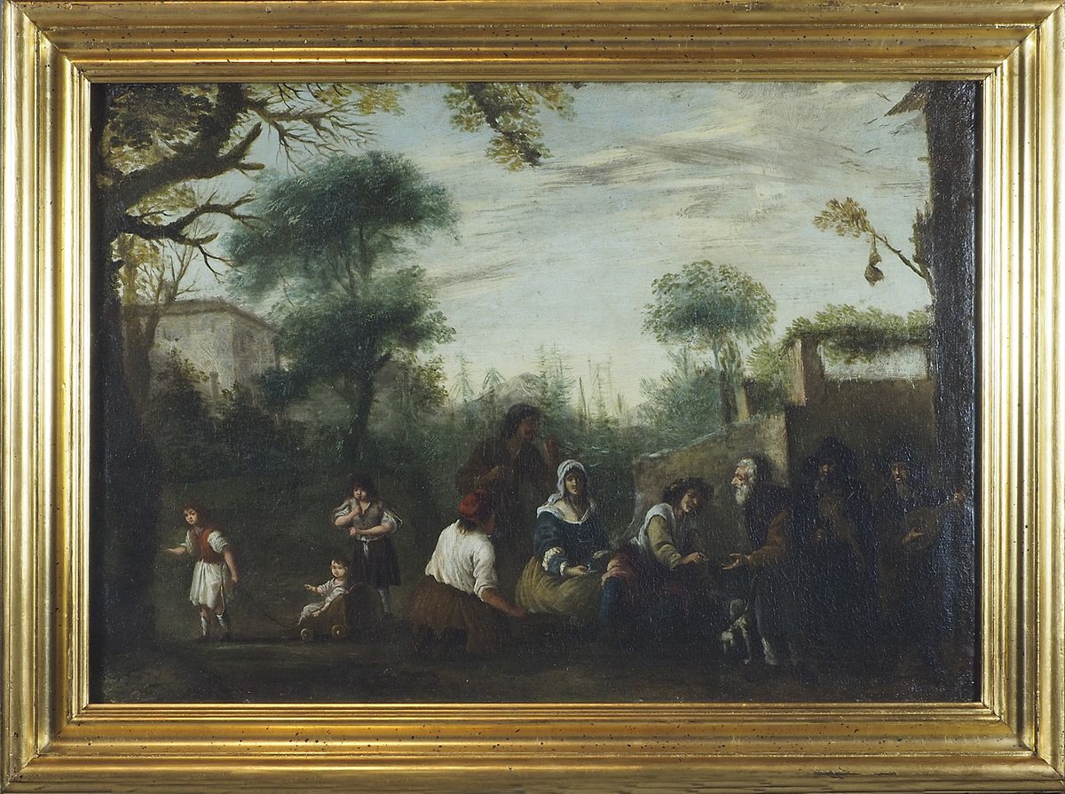 Maestro del XVII secolo "Scena popolare" cm. 45x66 - olio su tela foderata...