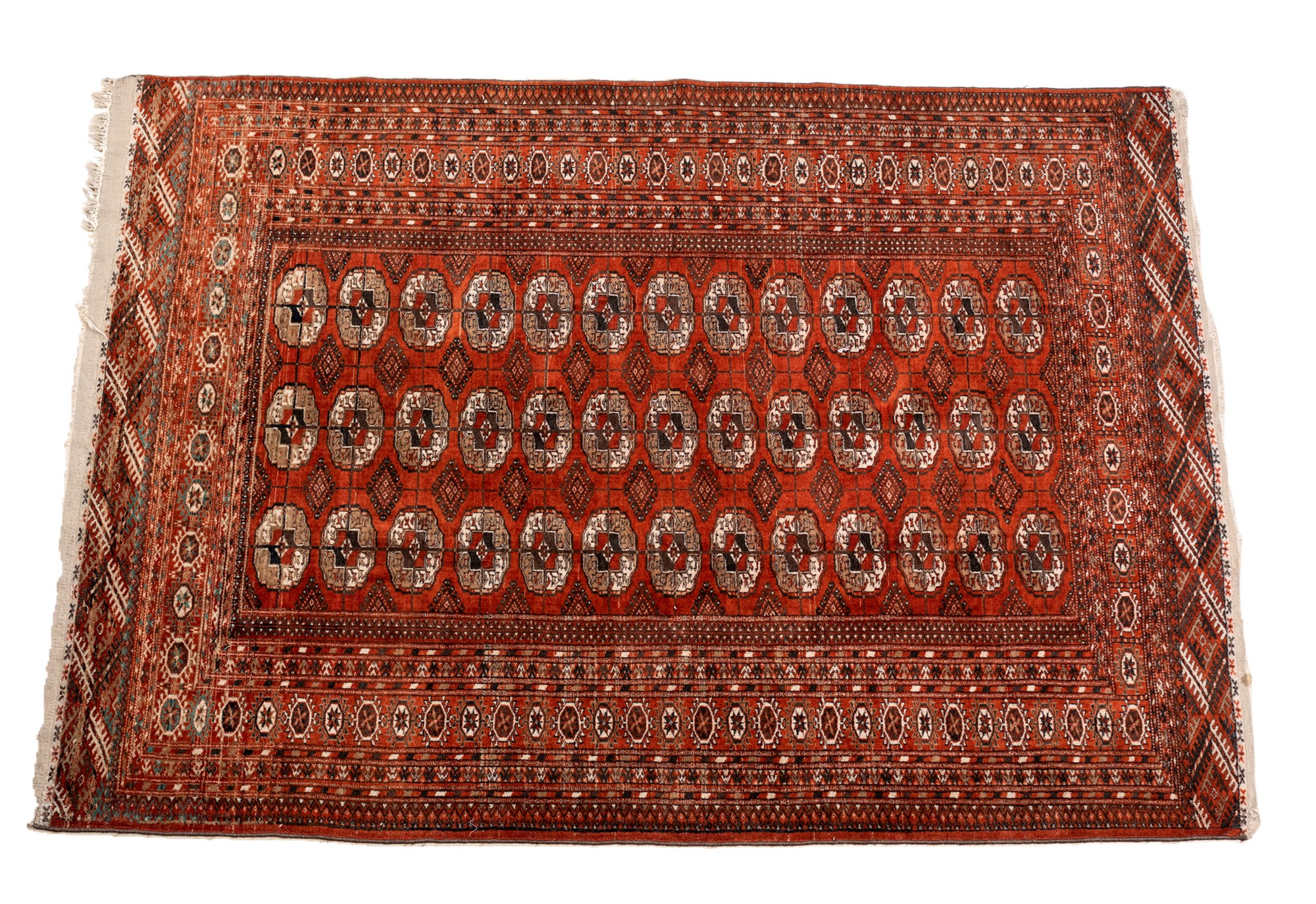 fondo rosso con tre file parallele di medaglioni caratteristici entro molteplici piccole bordure cm 180x135