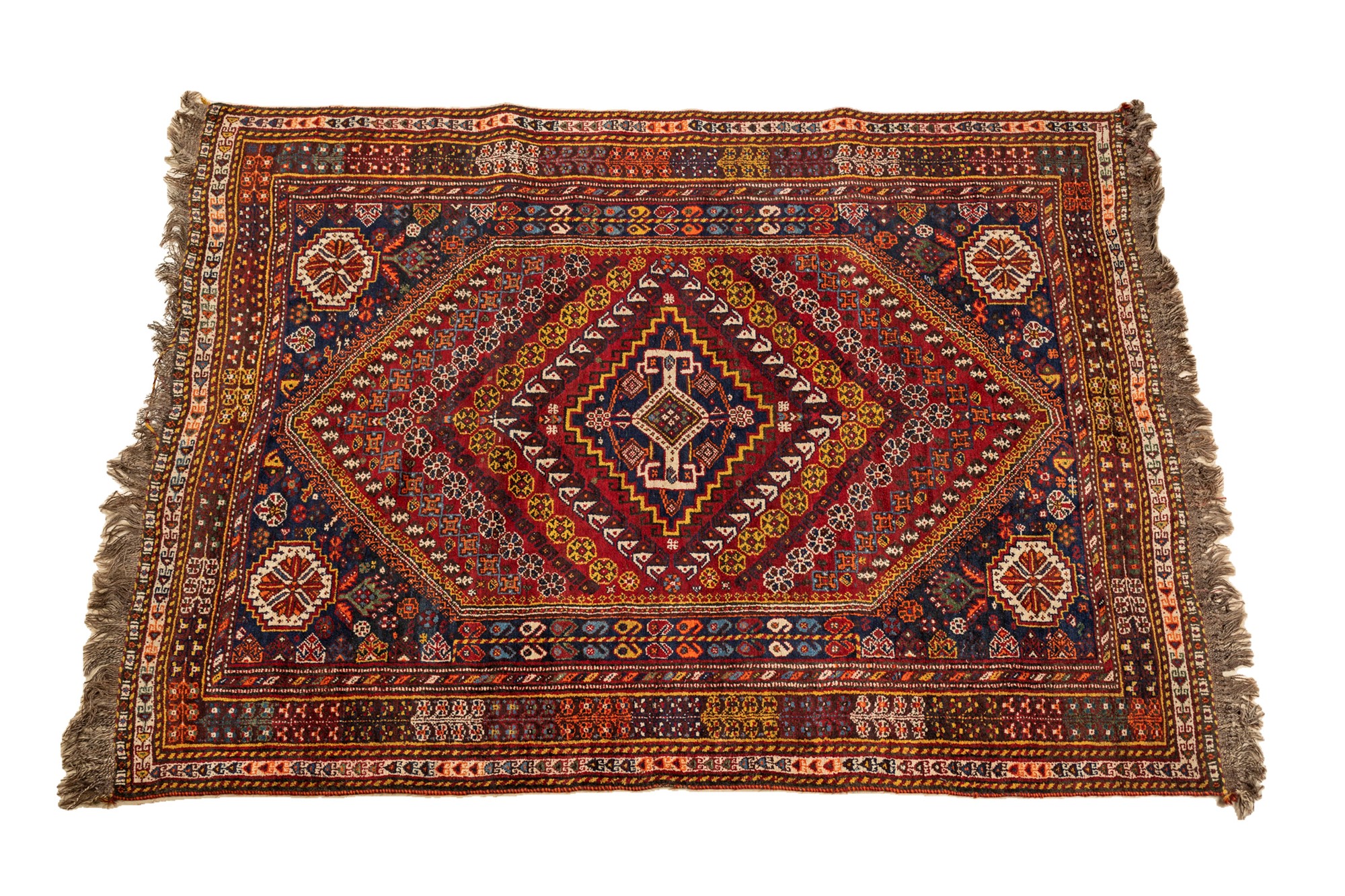a disegno geometrico nei toni del rosso, bruno e arancio.