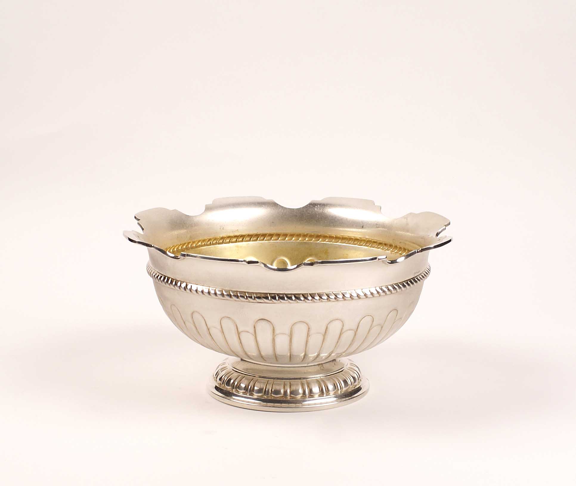 CENTROTAVOLA A COPPA IN ARGENTO E ARGENTO DORATO Italia, vecchia manifattura Con profilo smerlato e baccellato sul corpo, h. cm. 14, d. cm. 27,5 Peso 756 gr.