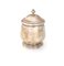 Silver circular sugar bowl with lit