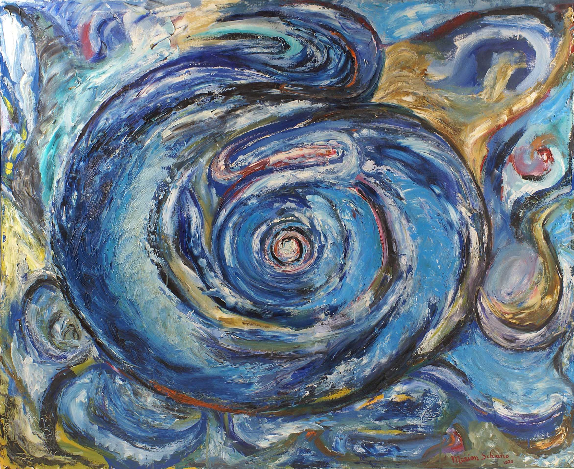 MARION SCHIANO Italia XX Sec. "Senza titolo", olio su tela, firmato e datato 1970 in basso a destra Dim. 125x150 cm.