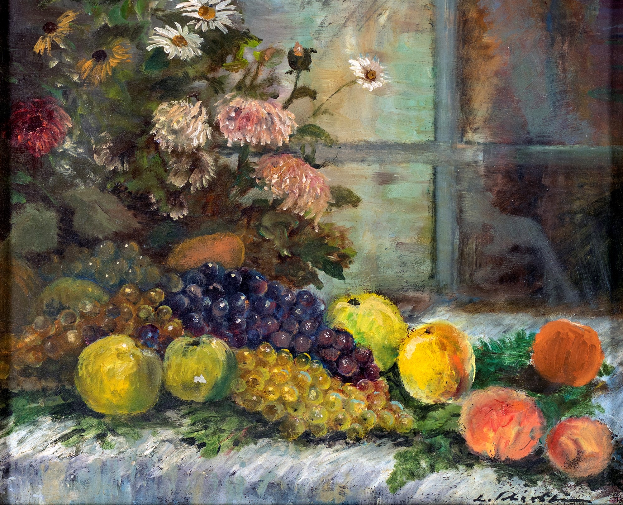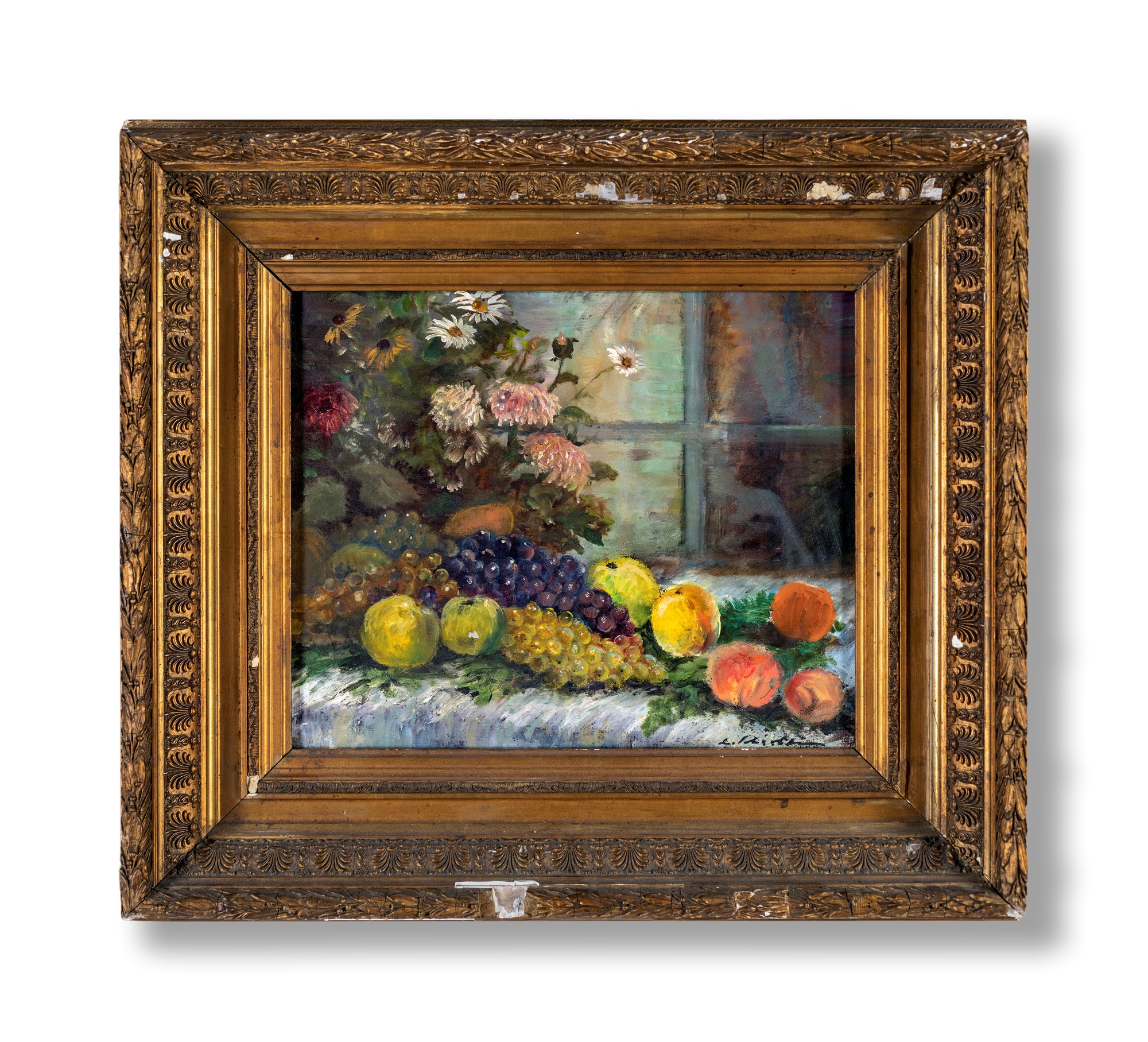 Pittore della fine del XIX secolo Composition with flowers and fruit