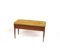 PANCHETTA Inghilterra XIX Sec. In mogano filettato in legno di bosso e satinwood, piano rettangolare imbottito, rivestito in tessuto ed apribile, poggiante su gambe troncopiramidali Dim. 51x88x37 cm.