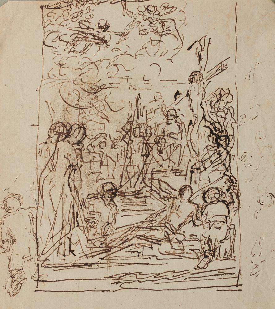 Scuola Italiana del XIX secolo CROCIFISSIONE Penna e inchiostro bruno. mm...