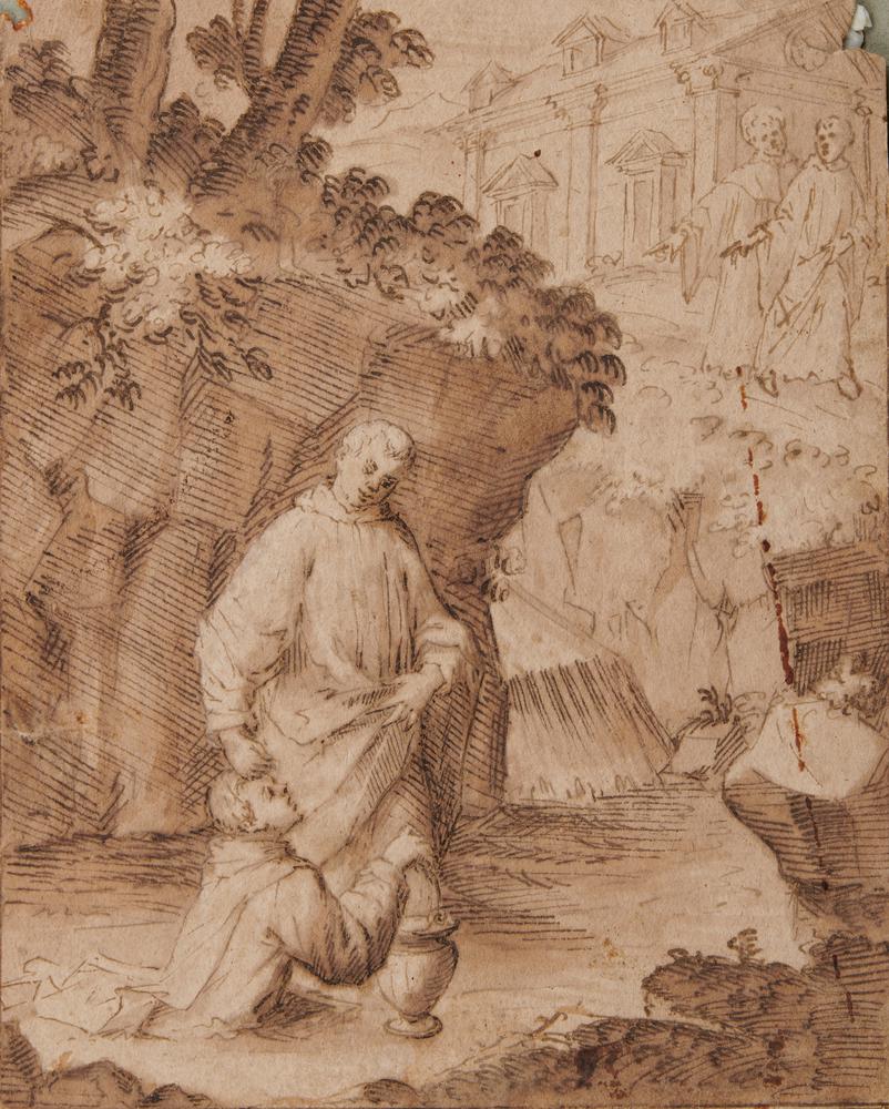 Scuola dell'Italia Centrale del XVI secolo LA GUARIGIONE DI UN FRATE Penna e...