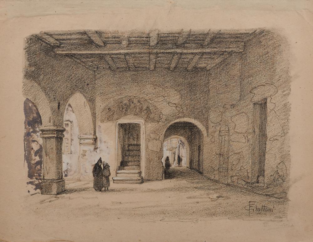 Lotto 57 | Francesco Ghittoni (1855 - 1928) FIGURE IN UN PORTICATO Gessetto nero. mm...