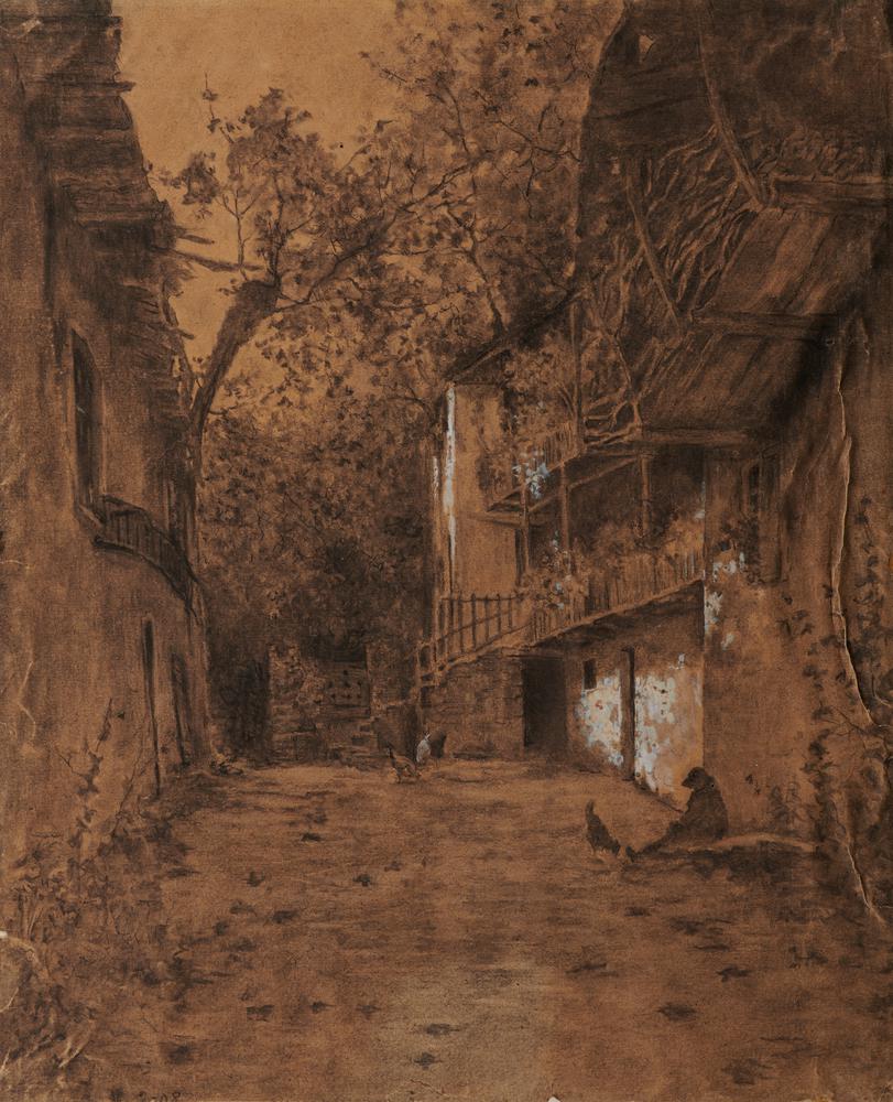 Lotto 70 | Scuola Italiana del XIX secolo VIILAGGIO DI CAMPAGNA Gessetto nero e rialzi a...