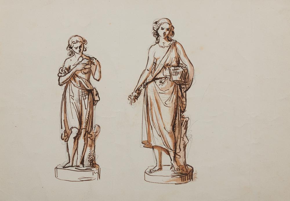 Scuola Neoclassica STUDIO PER DUE STATUE Penna e inchiostro bruno e matita di...